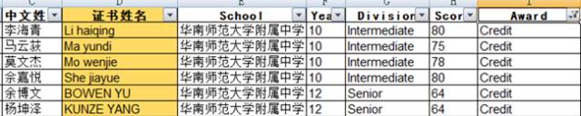 华附国际部也派出多位学子参赛,获得不同程度的奖项。获奖名单如下: